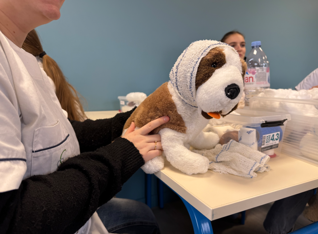 L’apprentissage débute sur des peluches pédagogiques afin de maîtriser les gestes en toute sécurité, puis se poursuit sur de vrais animaux, toujours dans le respect de leur bien-être.